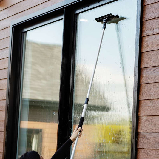 Riboto laiko nuolaidaLangų valymo įrankis su teleskopine rankena – švarūs langai be kopėčių ir be dryžių